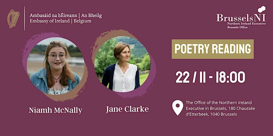 A poetry evening with Niamh McNally and Jane Clarke, two poets from north and south of the island of Ireland organised by the Northern Ireland Executive Office in Brussels and the Embassy of Ireland Book Club.